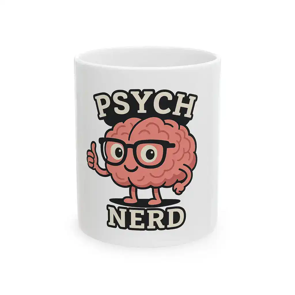 Embrace the “nerd” label proudly with this cute mug featuring a cartoon brain giving a thumbs up. It is a lighthearted and fun gift that is ideal for students, educators, or anyone who is unapologetically enthusiastic about psychology. This quirky cup is sure to bring a cheerful vibe to any study session or office break room.